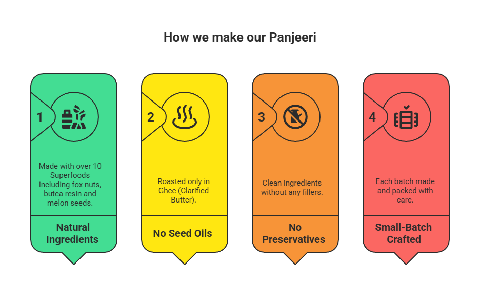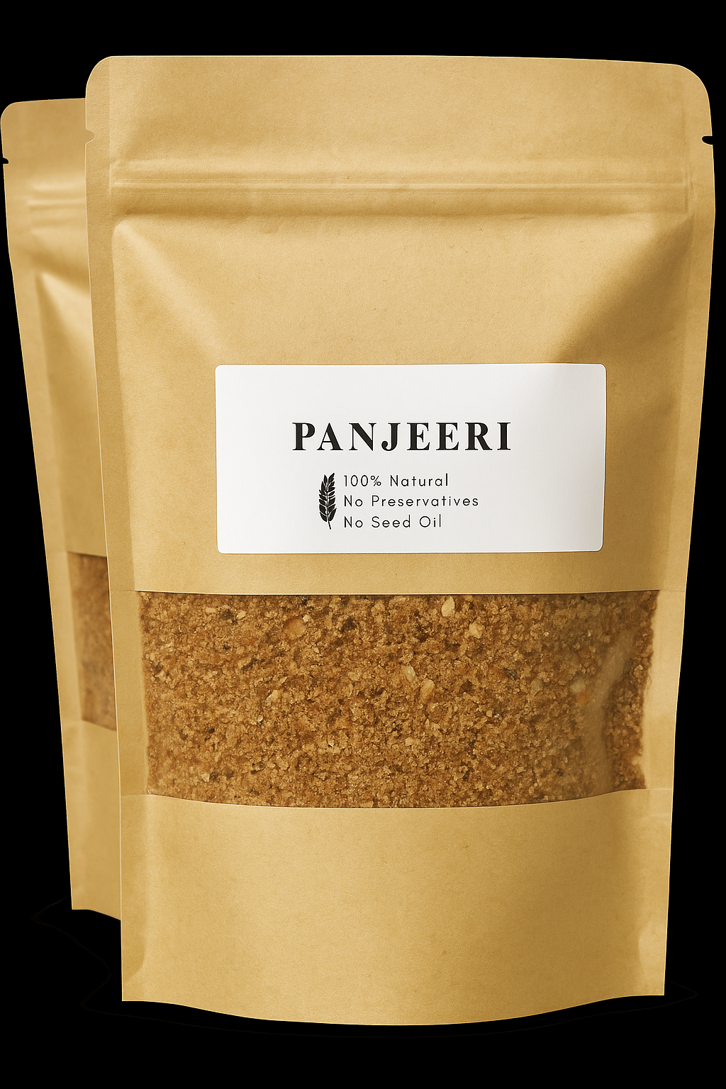 Mora Panjeeri is crafted with over 10 nuts and seeds, slow-roasted in ghee for deep flavor and nourishment.